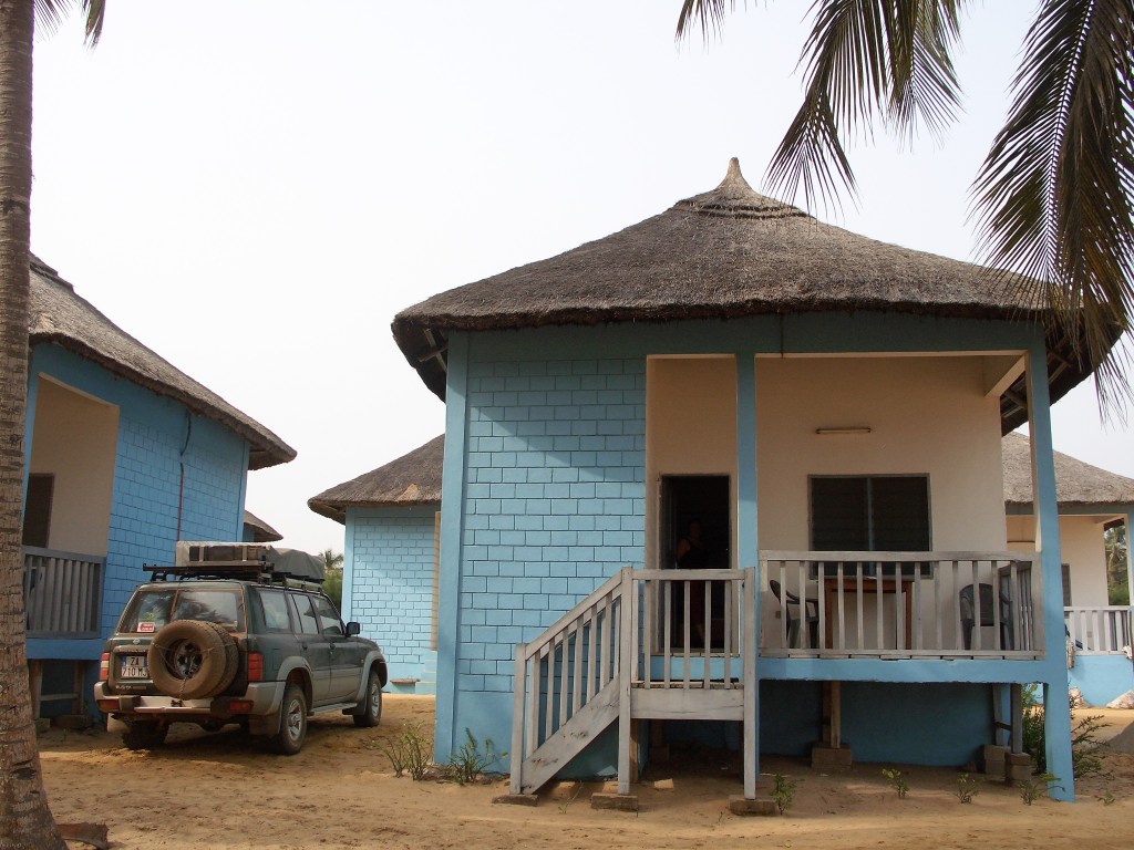 Non trovando un campeggio decidiamo di alloggiare in un hotel sulla spiaggia, circondati da palme di cocco ed uccelli colorati. Ci assegnano un Bungalow azzurro col tetto di paglia.