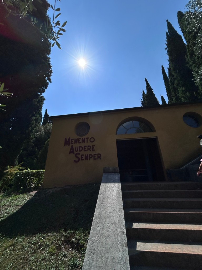 La nostra meta designata era il magnifico Vittoriale degli Italiani a Gardone Riviera. Siamo partite con la mia fidata macchinina, scegliendo un percorso panoramico mozzafiato che ci ha portato da Malcesine a Riva del Garda, scendendo poi con calma lungo la sponda occidentale, più selvaggia di quella orientale.